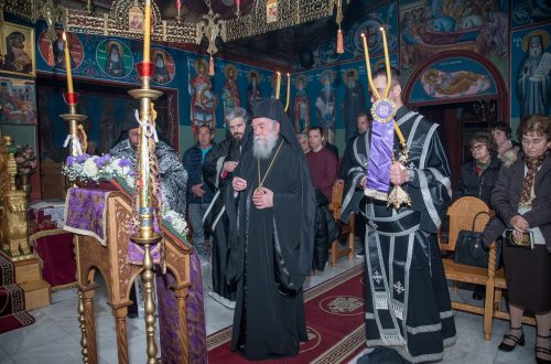 Η πανηγυρική Ακολουθία του Εσπερινού άρχισε την 11ην πρωινή, στον Μητροπολιτικό Ιερό Ναό του Αγίου Νικολάου παρουσία πιστών και φιλακόλουθων χριστιανών υπό τους χαρμόσυνους ήχους της αναστάσιμης ψαλμωδίας του χορού των ιεροψαλτών του Μητροπολιτικού Ναού.