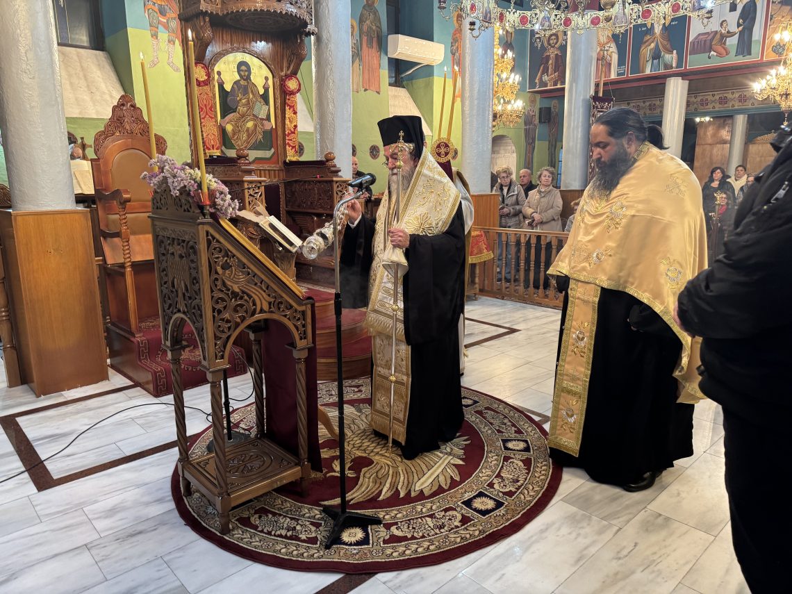 Την Κυριακή 22 Φεβρουαρίου 2026, της Τυρινής, ο Σεβασμιώτατος Μητροπολίτης μας κ. Χρυσόστομος ετέλεσε την Θεία Λειτουργία στον ενοριακό Ιερό Ναό Αγίου Γεωργίου Παλαιοχωρίου, πλαισιωμένος από τον Πρωτοσύγκελλο της Μητροπόλεως Αρχιμανδρίτη Χρυσόστομο Μπένο, τον Εφημέριο της ενορίας π. Θεοχάρη Καλπάκογλου και τους Διακόνους της Μητροπόλεως. Τον Θείο Λόγο εκήρυξε ο Σεβασμιώτατος Ποιμενάρχης μας, εστιάζοντας στο γεγονός της εξώσεως των Πρωτοπλάστων από τον Παράδεισο, το οποίο η Εκκλησία προβάλλει ιδιαιτέρως την ημέρα αυτή ως πνευματική αφετηρία της Αγίας και Μεγάλης Τεσσαρακοστής. Αναφέρθηκε στη βιβλική διήγηση της Γενέσεως και περιέγραψε την ευλογημένη κατάσταση του Παραδείσου, όπου ο άνθρωπος ζούσε σε άμεση κοινωνία με τον Θεό, απολαμβάνοντας την αληθινή ευτυχία που δεν στηρίζεται…